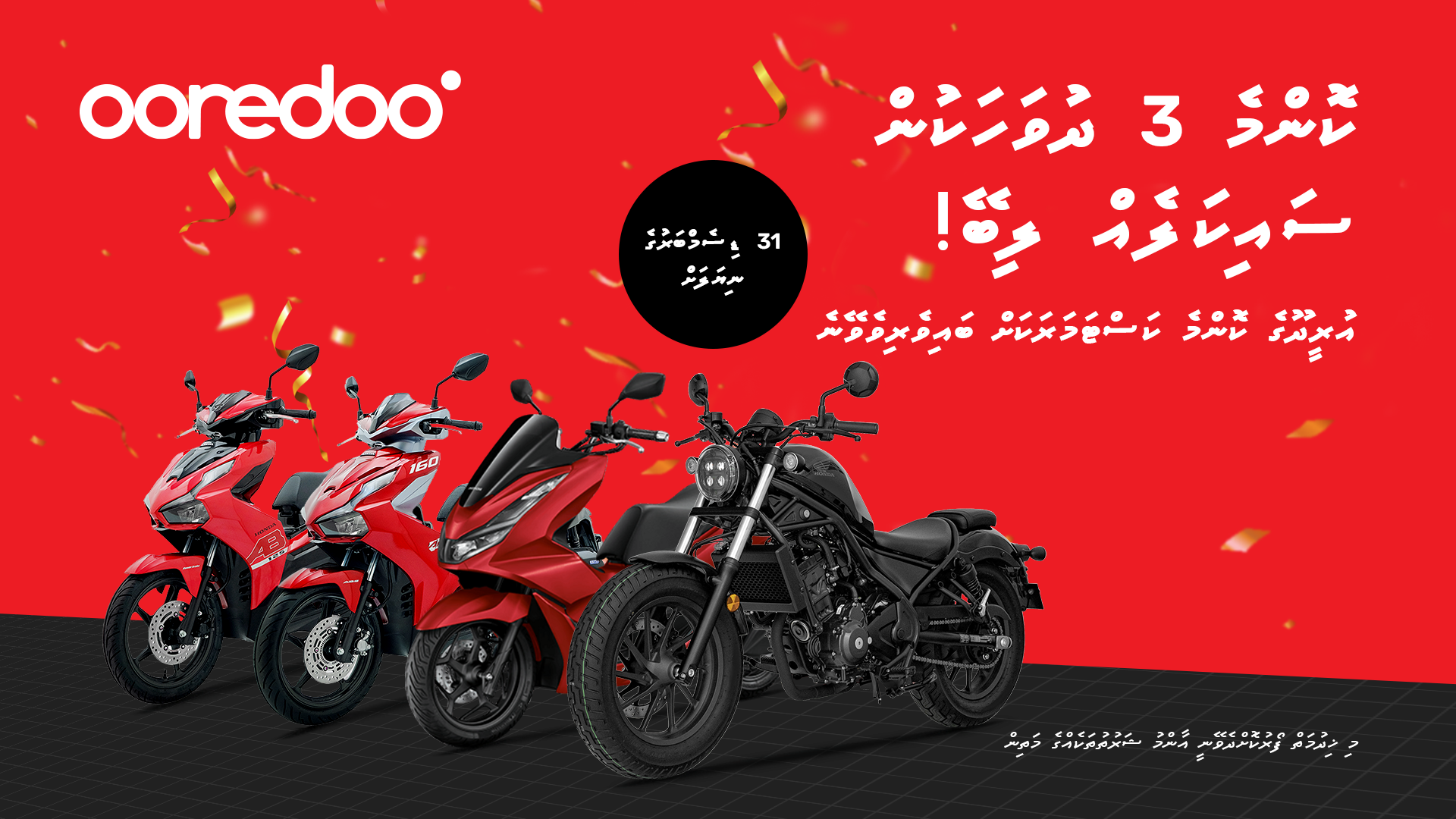 01 އޮކްޓޯބަރ 2024އުރީދޫގެ 5ޖީ ލިބޭ ކެމްޕޭނާއެކު ކޮންމެ 3 ދުވަހަކުން ސައިކަލު ލިބޭ ޕްރޮމޯޝަނެއް!