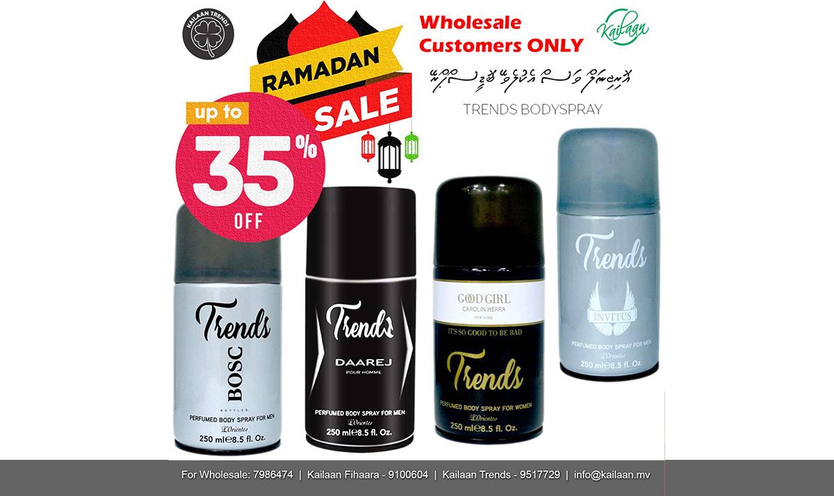 ޓްރެންޑްސް ބްރޭންޑްގެ ބޮޑީސްޕްރޭ ހުސްކުރާ ސޭލެއް ކައިލާންގައި