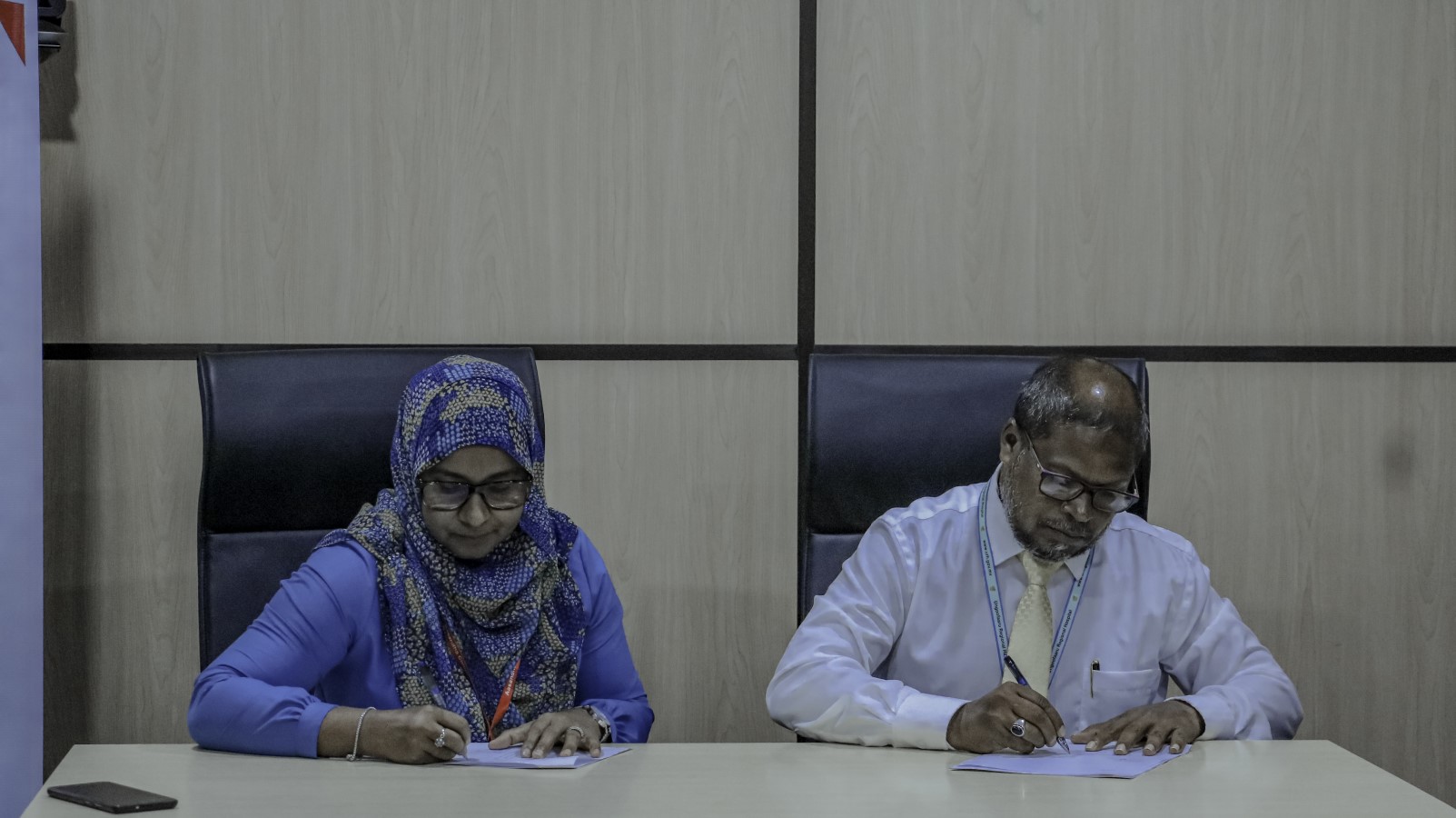 ހޮސްޕިޓަލްތަކަށް ޓީވީ ހަދިޔާކުރުމުގެ އެމްއޯޔޫތަކުގައި އާސަންދަ ކުންފުނީގެ ފަރާތުން ސޮއިކުރެއްވީ އެ ކުންފުނީގެ މެނޭޖިން ޑިރެކްޓަރ، މަރިޔަމް ޝަފީޤެވެ. އަދި ހޮސްޕިޓަލްތަކުގެ ފަރާތުން ސޮއިކުރެއްވީ ހޮސްޕިޓަލްތަކުން ވަޑައިގެންނެވި އިސްވެ ދެންނެވުނު ބޭފުޅުންނެވެ.