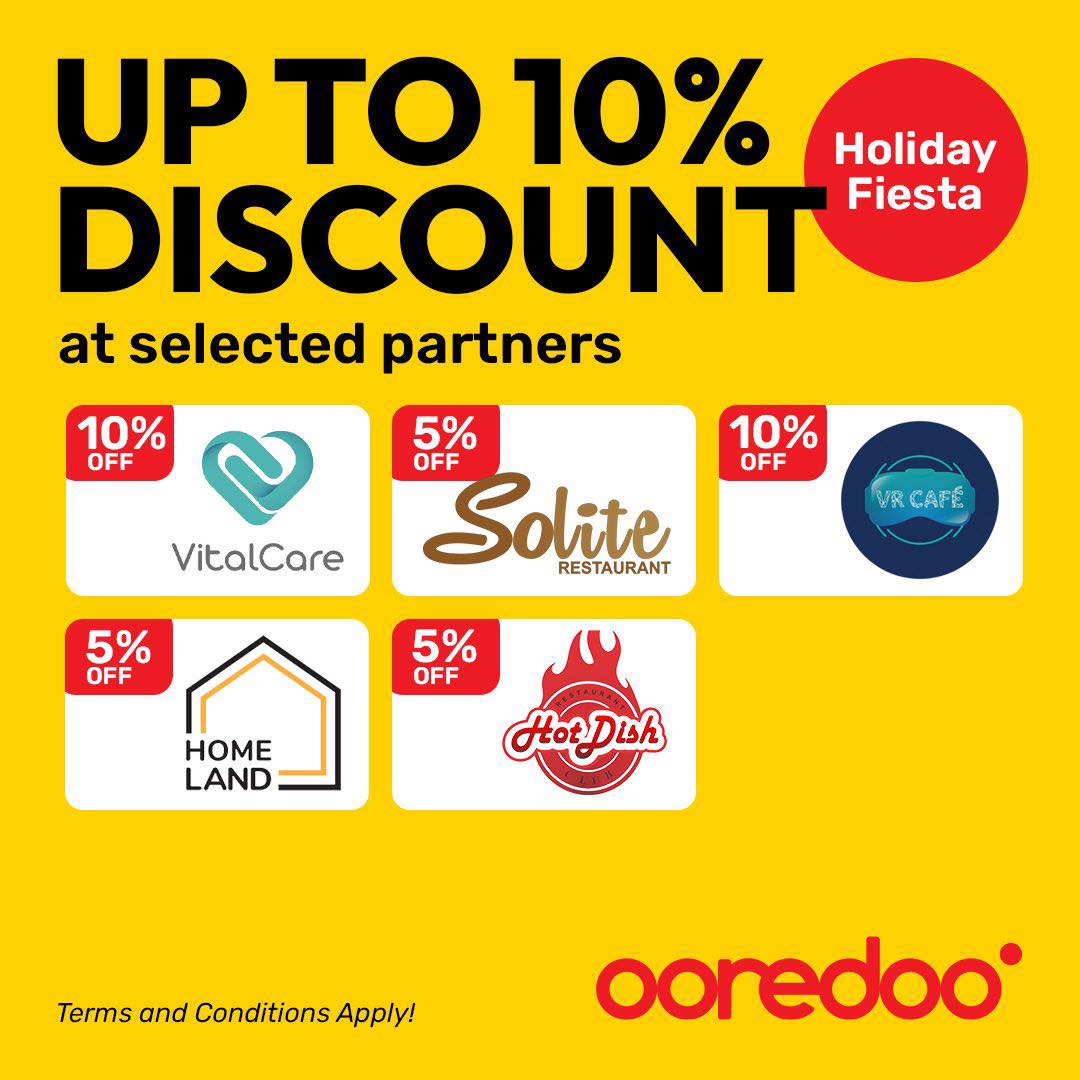 މި ޖޫން މަހުގެ 10 ވަނަ ދުވަހުން ފެށިގެން ޖޫން މަހުގެ 30 ވަނަ ދުވަހުގެ ނިޔަލަށް ކުރިއަށް ގެންދިއުމަށް ނިންމާފައިވާ މި ޕްރޮމޯޝަން، ހޮލިޑޭ ފިއެސްޓާގެ މުއްދަތުގައި ކަސްޓަމަރުންނަށް ޑިސްކައުންޓް ލިބޭ އައުޓްލެޓް ތަކަކީ: