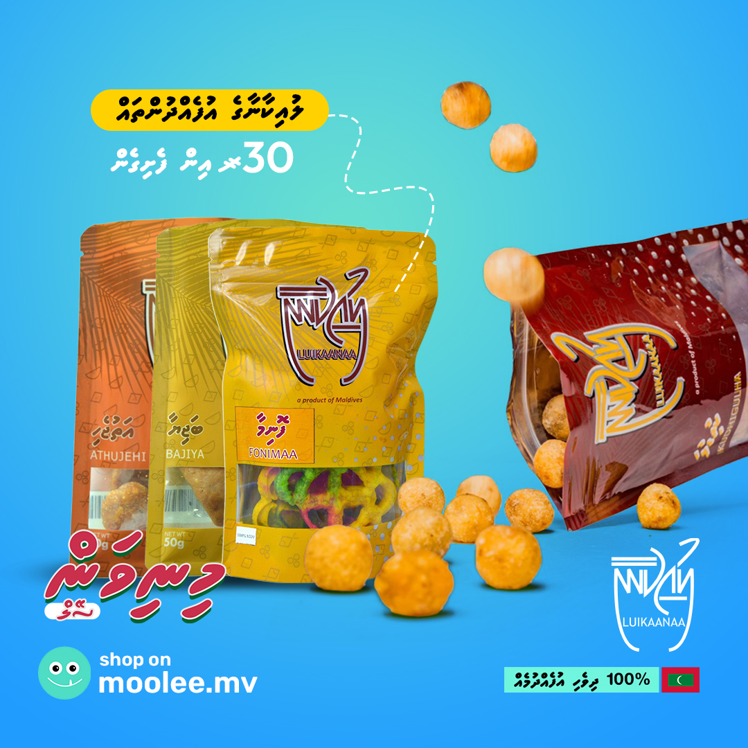 ދިވެހި ރަހަތައް އުފައްދާ މަޝްހޫރު ކުންފުނި ލުއިކާނާ އިން މޫލީ މިނިވަން ސޭލްގައި އެ ކުންފުނީގެ އުފެއްދުންތަކުން 10 ޕަސެންޓްގެ ހާއްސަ ޑިސްކައުންޓެއް ކަސްޓަމަރުންނަށް ފޯރުކޮށްދެއެވެ. ކުދި ގުޅަ، ކުޅި ކަޖާ، އަތުޖެހި، މުރު މުރު، ފޮނި މާ، ބޮނޑި ފަދަ އުފެއްދުންތައް މޫލީ މިނިވަން ސޭލް މެދުވެރިކޮށް ބައްލަވައިގަތުމަށް https://mool.ee/luikaana ޒިޔާރާތްކޮށްލައްވާށެވެ.